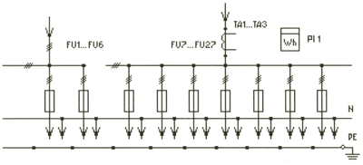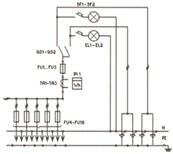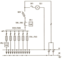 | ВРУ1-21-10УХЛ4 | FU1-FU3: Предохранители ПН2-250 FU4-FU9: Предохранители ПН2-60 FU10-FU18: Предохранители ПН2-100 PI1: Счетчик (учет общих нагрузок) QS1: Переключатель 250А SF1, SF2: Автоматические выключатели EL1, EL2: Лампы накаливания TA1-TA3: Трансф-ры тока 50/5...200/5 | Нет | Нет | |