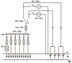 | ВРУ1-22-53УХЛ4 ВРУ1-22-54УХЛ4 ВРУ1-22-55УХЛ4 ВРУ1-22-56УХЛ4 | FU1-FU3: Предохранители ПН2-250 FU4-FU21: Предохранители ПН2-100 PI1: Счетчик (учет домоупр. нагрузок) QS1, QS2: Блок-выключатели SF1, SF2: Автоматические выключатели EL1, EL2: Лампы накаливания | Автомат. с автомат. выключ. Неавтомат. с автомат. выключ. Автомат. с автомат. выключ. Неавтомат. с автомат. выключ. | 5 6 7 8 | |