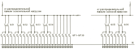Рис. 1 KM1-KM3:Пускатель ПМЛ KV1: Промежуточное реле KL1: Фотореле ФР KT1: Реле времени 2РВМ QS1-QS6: Разъединители QF1-QF32: Автоматические выключатели |