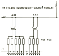 Рис. 3 KM1:Пускатель ПМЛ KL1: Фотореле ФР QS1-QS2: Разъединители FU1-FU9: Предохранители ПРС | Рис. 4 QS1-QS2: Разъединители FU1-FU8: Предохранители ПРС |